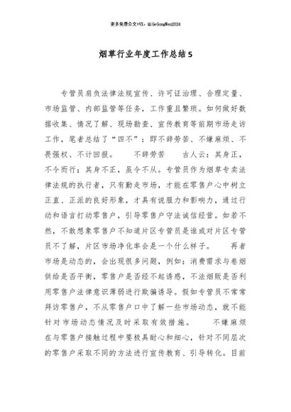 【七哥公文】2026年:烟草行业年度工作总结5_副本+更多免费公文+VX:QiGeGongWen2024