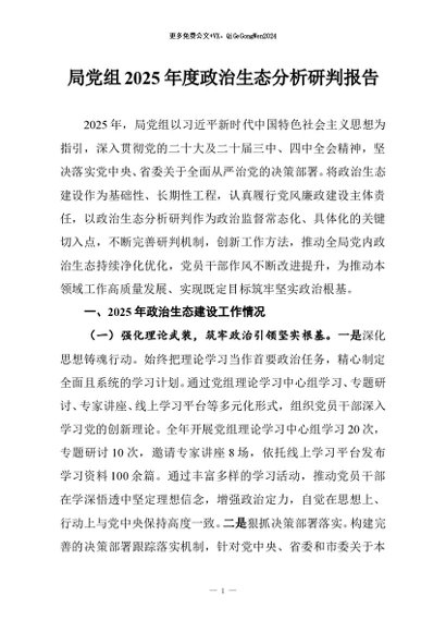 / 【七哥公文】2026年:局党组2025年度政治生态分析研判报告+更多免费公文+VX:QiGeGongWen2024