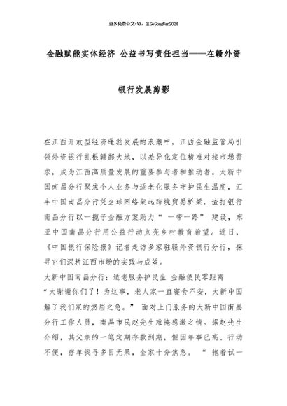 【七哥公文】2026年:金融赋能实体经济 公益书写责任担当——在赣外资银行发展剪影_副本+更多免费公文+VX:QiGeGongWen2024