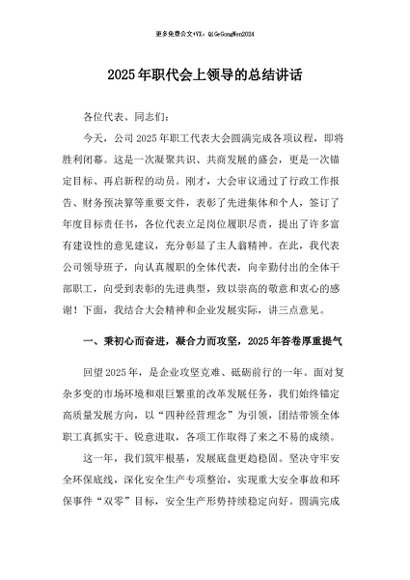 / 【七哥公文】2026年:2025年职代会上领导的总结讲话+更多免费公文+VX:QiGeGongWen2024