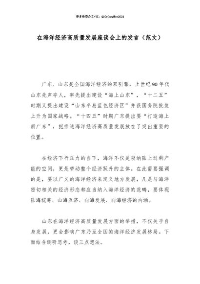 【七哥公文】2026年:在海洋经济高质量发展座谈会上的发言(范文)_副本+更多免费公文+VX:QiGeGongWen2024
