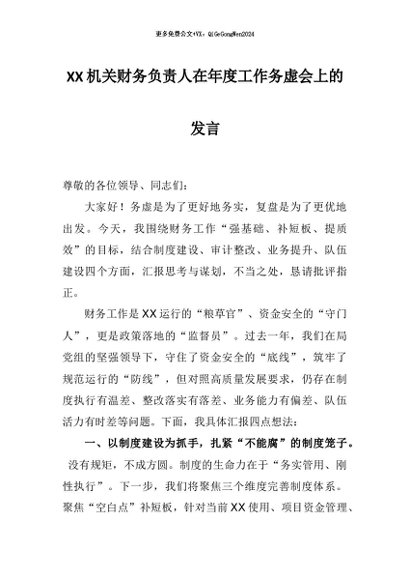 【七哥公文】2026年:XX机关财务负责人在年度工作务虚会上的发言(3)+更多免费公文+VX:QiGeGongWen2024