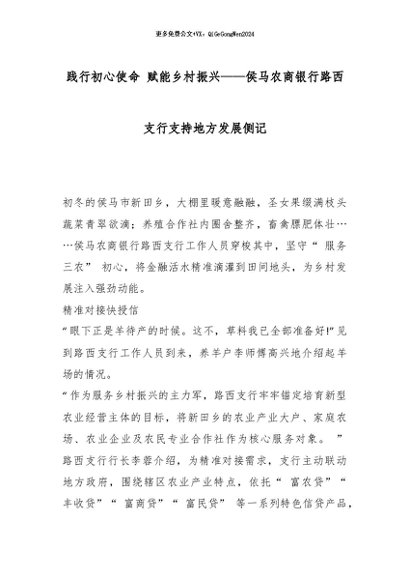 【七哥公文】2026年:践行初心使命 赋能乡村振兴——侯马农商银行路西支行支持地方发展侧记_副本+更多免费公文+VX:QiGeGongWen2024