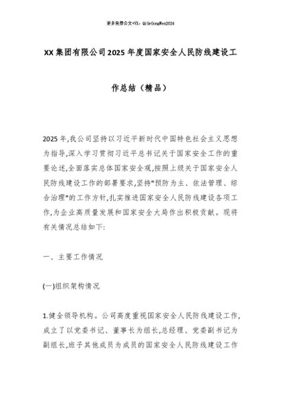 【七哥公文】2026年:XX集团有限公司2025年度国家安全人民防线建设工作总结(精品)_副本+更多免费公文+VX:QiGeGongWen2024