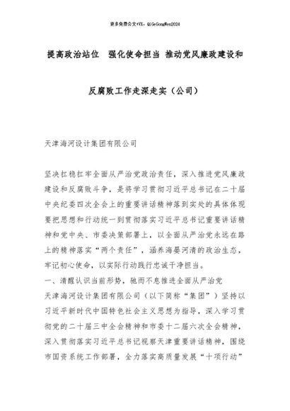 【七哥公文】2026年:提高政治站位 强化使命担当 推动党风廉政建设和反腐败工作走深走实(公司)_副本+更多免费公文+VX:QiGeGongWen2024