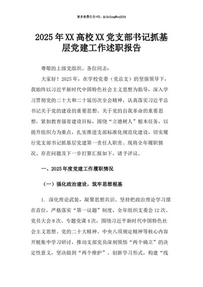 【七哥公文】2026年:2025年XX高校XX党支部书记抓基层党建工作述职报告+更多免费公文+VX:QiGeGongWen2024