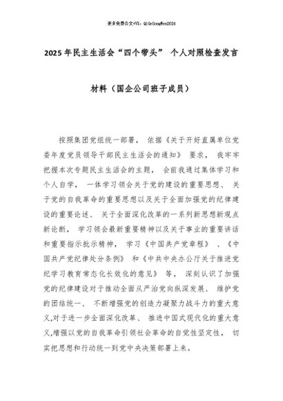 【七哥公文】2026年:2025年民主生活会“四个带头” 个人对照检查发言材料(国企公司班子成员)_副本+更多免费公文+VX:QiGeGongWen2024