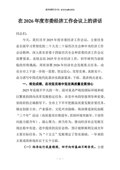 / 【七哥公文】2026年:在2026年度市委经济工作会议上的讲话+更多免费公文+VX:QiGeGongWen2024