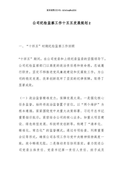 / 【七哥公文】2026年:公司纪检监察工作十五五发展规划2_副本+更多免费公文+VX:QiGeGongWen2024