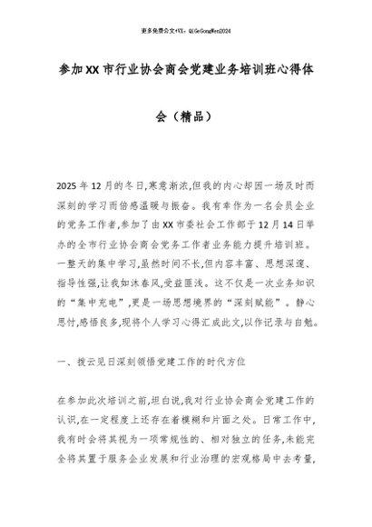【七哥公文】2026年:参加XX市行业协会商会党建业务培训班心得体会(精品)_副本+更多免费公文+VX:QiGeGongWen2024
