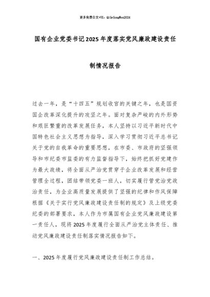 【七哥公文】2026年:国有企业党委书记2025年度落实党风廉政建设责任制情况报告_副本+更多免费公文+VX:QiGeGongWen2024