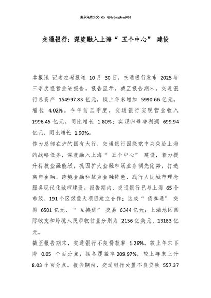 【七哥公文】2026年:交通银行:深度融入上海“ 五个中心” 建设_副本+更多免费公文+VX:QiGeGongWen2024