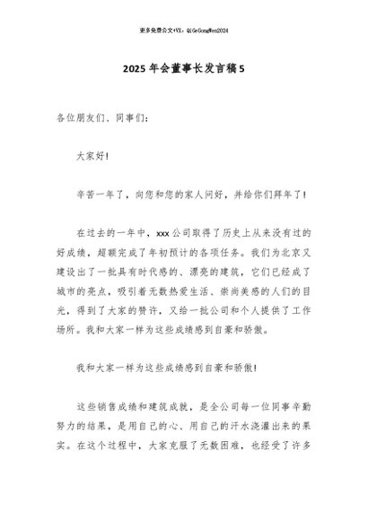 / 【七哥公文】2026年:2025年会董事长发言稿5_副本+更多免费公文+VX:QiGeGongWen2024