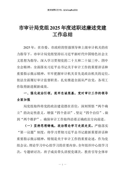 / 【七哥公文】2026年:市审计局党组2025年度述职述廉述党建工作总结+更多免费公文+VX:QiGeGongWen2024