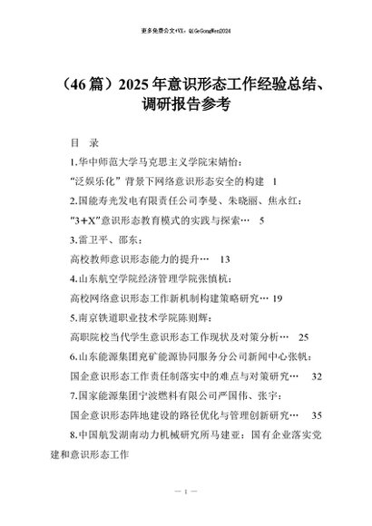 【七哥公文】2026年:(46篇)2025年意识形态工作经验总结、调研报告参考+更多免费公文+VX:QiGeGongWen2024