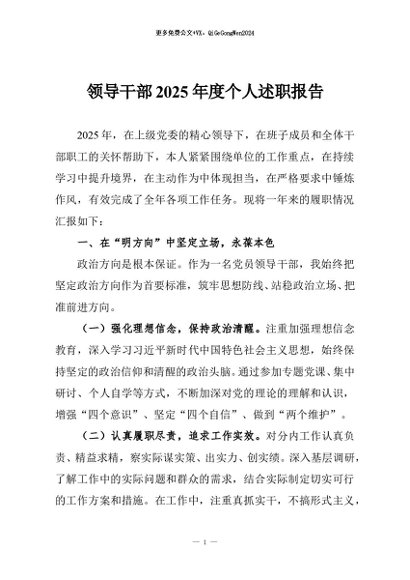 / 【七哥公文】2026年:领导干部2025年度个人述职报告+更多免费公文+VX:QiGeGongWen2024