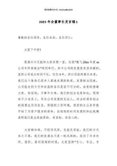 / 【七哥公文】2026年:2025年会董事长发言稿1_副本+更多免费公文+VX:QiGeGongWen2024