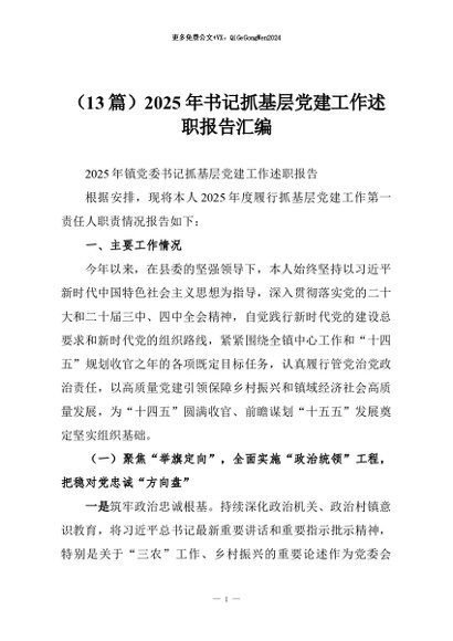 【七哥公文】2026年:(13篇)2025年书记抓基层党建工作述职报告汇编+更多免费公文+VX:QiGeGongWen2024
