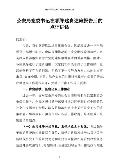 / 【七哥公文】2026年:公安局党委书记在领导述责述廉报告后的点评讲话+更多免费公文+VX:QiGeGongWen2024