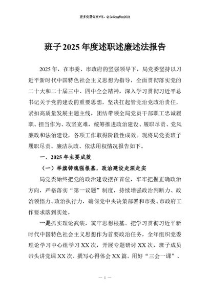 【七哥公文】2026年:班子2025年度述职述廉述法报告+更多免费公文+VX:QiGeGongWen2024
