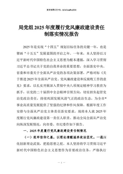 【七哥公文】2026年:局党组2025年度履行党风廉政建设责任制落实情况报告+更多免费公文+VX:QiGeGongWen2024