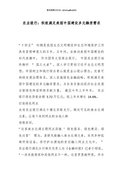 【七哥公文】2026年:农业银行:积极满足美丽中国建设多元融资需求_副本+更多免费公文+VX:QiGeGongWen2024