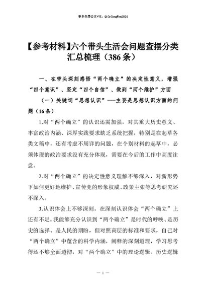 【七哥公文】2026年:【参考材料】六个带头生活会问题查摆分类汇总梳理(386条)+更多免费公文+VX:QiGeGongWen2024