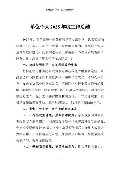 / 【七哥公文】2026年:单位个人2025年度工作总结+更多免费公文+VX:QiGeGongWen2024