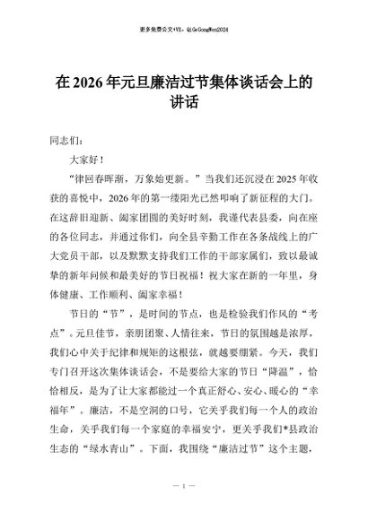 / 【七哥公文】2026年:在2026年元旦廉洁过节集体谈话会上的讲话+更多免费公文+VX:QiGeGongWen2024