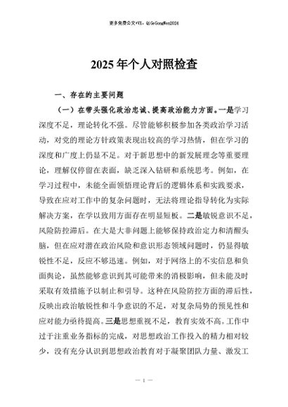/ 【七哥公文】2026年:2025年个人对照检查+更多免费公文+VX:QiGeGongWen2024