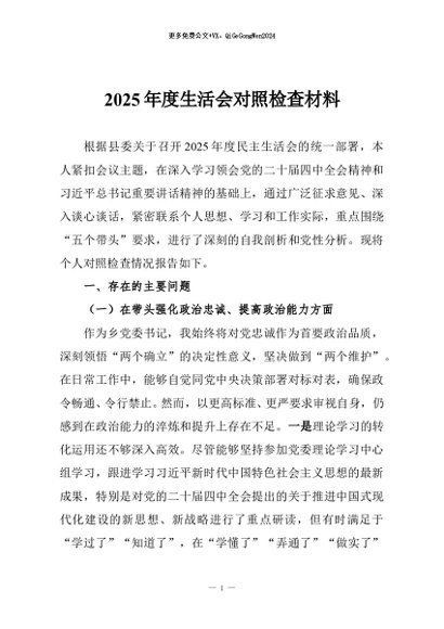 / 【七哥公文】2026年:2025年度生活会对照检查材料+更多免费公文+VX:QiGeGongWen2024