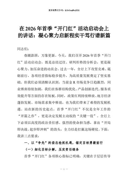 【七哥公文】2026年:在2026年首季“开门红”活动启动会上的讲话:凝心聚力启新程实干笃行谱新篇+更多免费公文+VX:QiGeGongWen2024