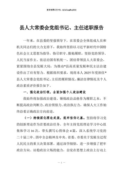 / 【七哥公文】2026年:县人大常委会党组书记、主任述职报告+更多免费公文+VX:QiGeGongWen2024