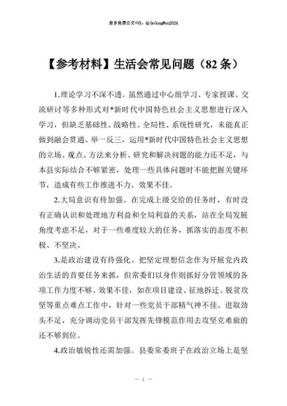/ 【七哥公文】2026年:【参考材料】生活会常见问题(82条)+更多免费公文+VX:QiGeGongWen2024