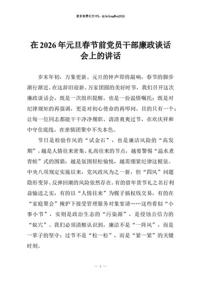 / 【七哥公文】2026年:在2026年元旦春节前党员干部廉政谈话会上的讲话+更多免费公文+VX:QiGeGongWen2024