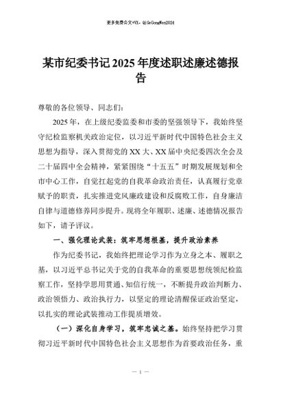 / 【七哥公文】2026年:某市纪委书记2025年度述职述廉述德报告+更多免费公文+VX:QiGeGongWen2024