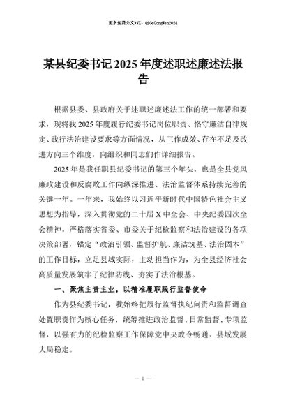 / 【七哥公文】2026年:某县纪委书记2025年度述职述廉述法报告+更多免费公文+VX:QiGeGongWen2024