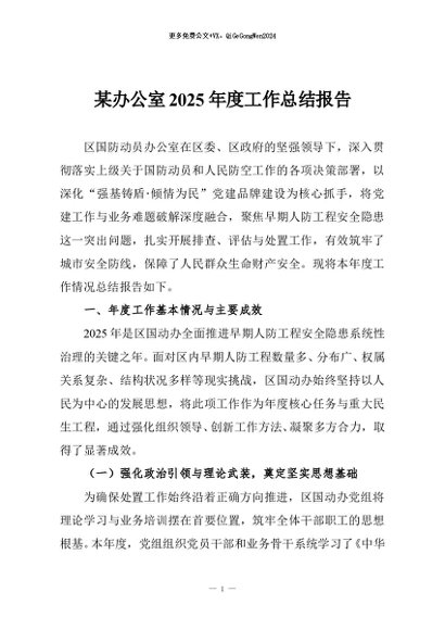 / 【七哥公文】2026年:某办公室2025年度工作总结报告+更多免费公文+VX:QiGeGongWen2024