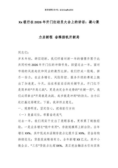 【七哥公文】2026年:Xx银行在2026年开门红动员大会上的讲话:凝心聚力启新程 奋楫扬帆开新局_副本+更多免费公文+VX:QiGeGongWen2024