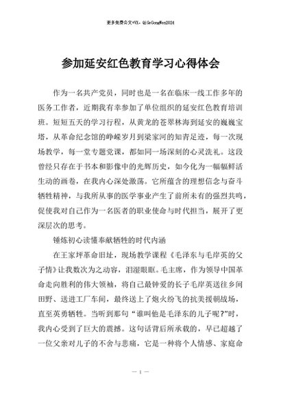 / 【七哥公文】2026年:参加延安红色教育学习心得体会+更多免费公文+VX:QiGeGongWen2024