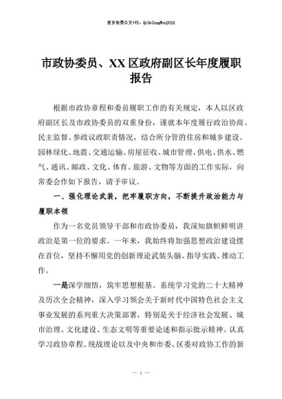 / 【七哥公文】2026年:市政协委员、XX区政府副区长年度履职报告+更多免费公文+VX:QiGeGongWen2024
