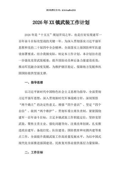 / 【七哥公文】2026年:2026年XX镇武装工作计划+更多免费公文+VX:QiGeGongWen2024