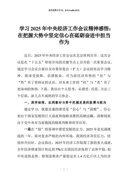 【七哥公文】2026年:学习2025年中央经济工作会议精神感悟:在把握大势中坚定信心在砥砺奋进中担当作为+更多免费公文+VX:QiGeGongWen2024