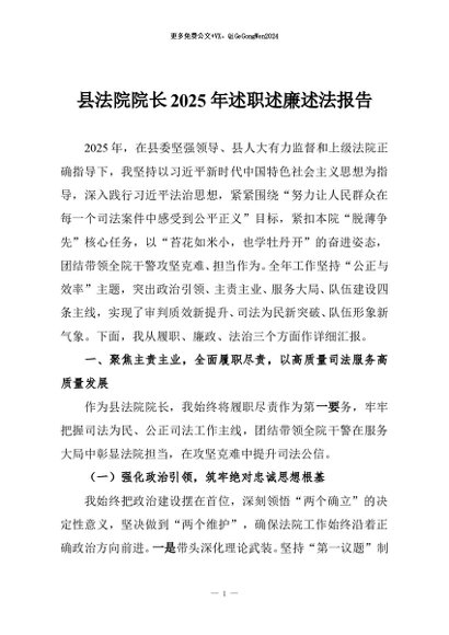 / 【七哥公文】2026年:县法院院长2025年述职述廉述法报告+更多免费公文+VX:QiGeGongWen2024