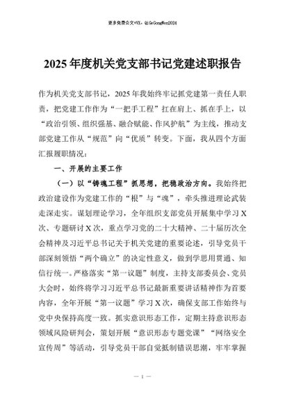 / 【七哥公文】2026年:2025年度机关党支部书记党建述职报告+更多免费公文+VX:QiGeGongWen2024