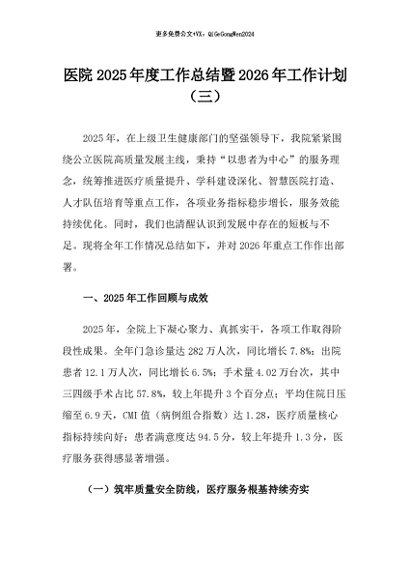 【七哥公文】2026年:医院2025年度工作总结暨2026年工作计划(三)+更多免费公文+VX:QiGeGongWen2024