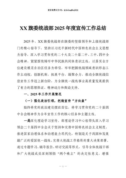 / 【七哥公文】2026年:XX旗委统战部2025年度宣传工作总结+更多免费公文+VX:QiGeGongWen2024