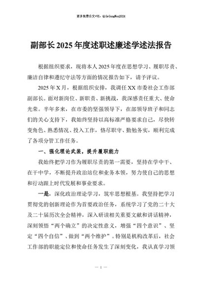 / 【七哥公文】2026年:副部长2025年度述职述廉述学述法报告+更多免费公文+VX:QiGeGongWen2024