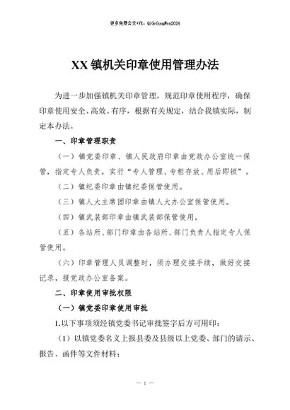 / 【七哥公文】2026年:XX镇机关印章使用管理办法+更多免费公文+VX:QiGeGongWen2024