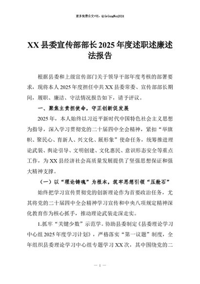 / 【七哥公文】2026年:XX县委宣传部部长2025年度述职述廉述法报告+更多免费公文+VX:QiGeGongWen2024